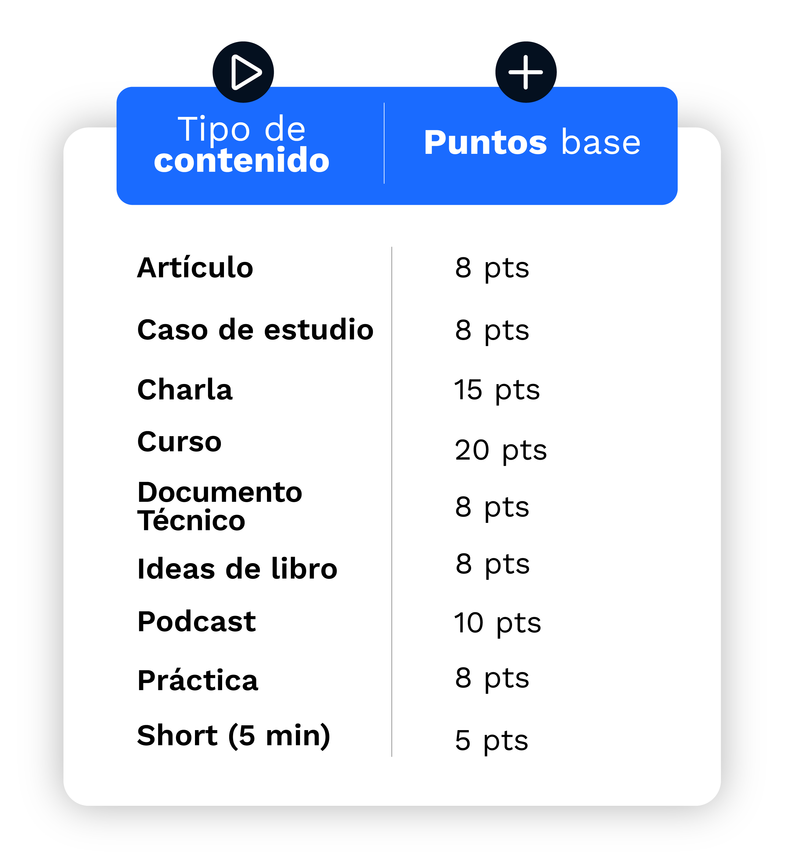 Es muy fácil: empieza a estudiar y suma puntos finalizando diferentes tipos de contenido. Cada semana se activa una competencia clave. Si completas contenidos relacionados con esa competencia, ¡tus puntos se duplican!
